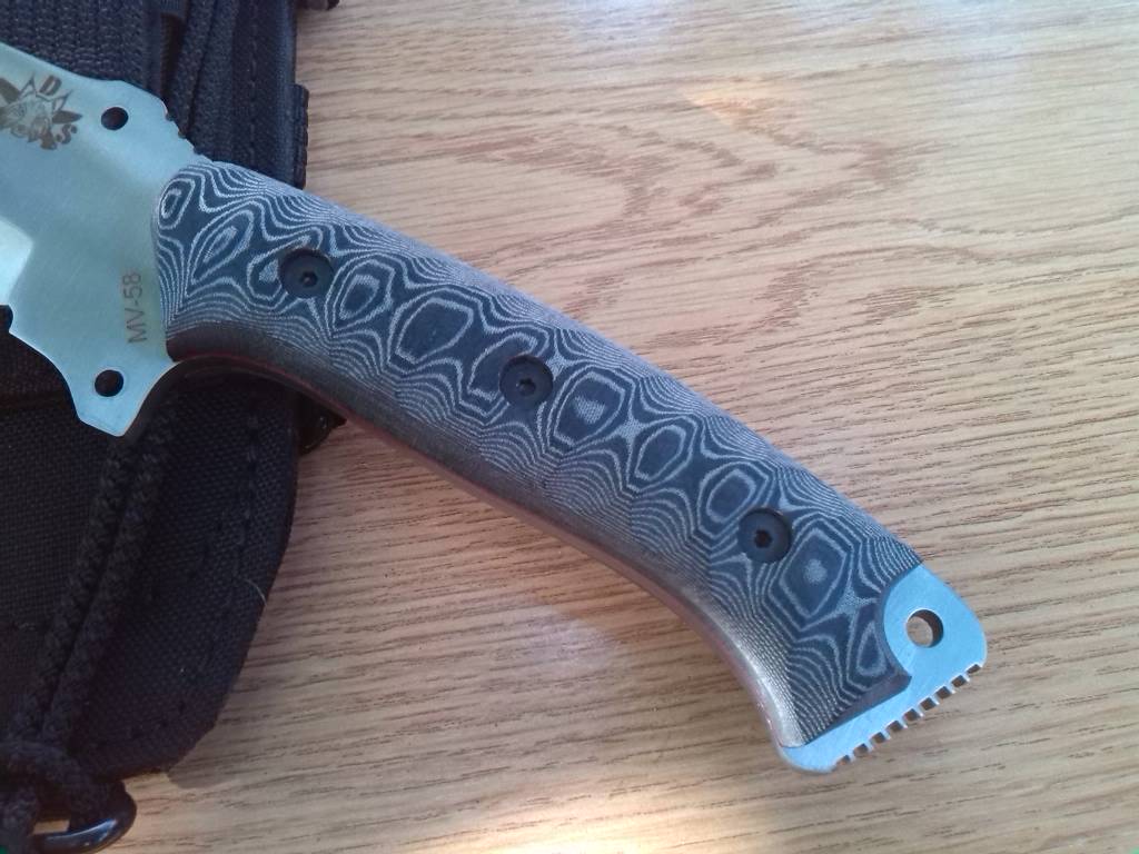 La terminación del puño de este cuchillo no es muy habitual. La impresión de agarre debido a la texturización del puño da una sensación mayor.
