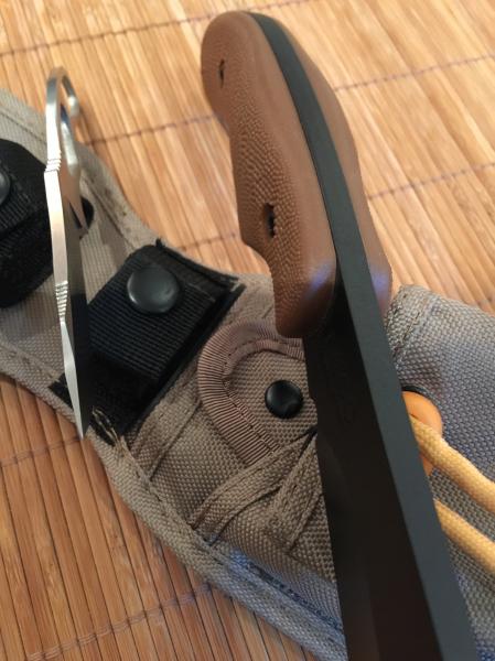 Incluyo dos fotos comparativas del tamaño del KA-BAR POTBELLY (respecto a una bayoneta BUCK M9 PHROBIS III), y algunas con el KA-BAR Monoblock que viene incluido.