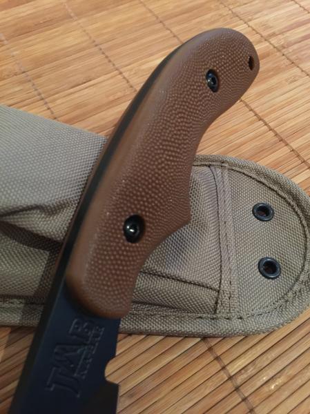 Cuchillo de aventurero, excursionista, y cazador, que sirve para cortar, machetear, hachetear, battoning, rematar y despellejar piezas. Todo un multiusos robusto con su hoja de tipo bowie.