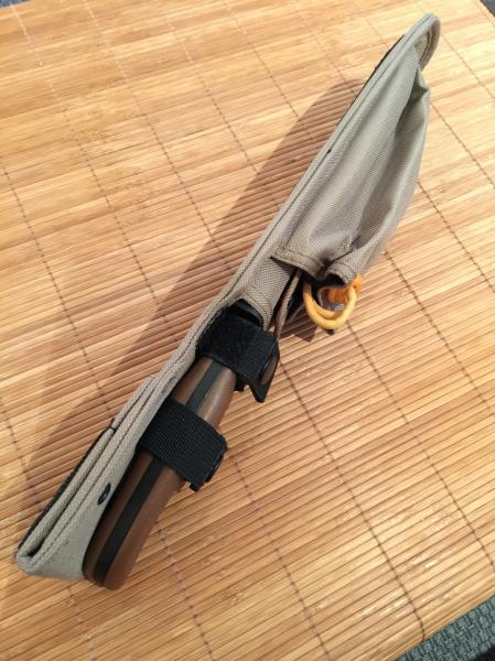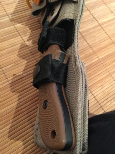 Funda táctica de gruesa cordura, con sistema M.O.L.L.E. y sujeción a cinto, con doble cierre automático más velcro para la sujeción del cuchillo KA-BAR 5600, y dos departamenteos frontales. Uno para el KA-BAR Monoblock, y el otro, de generosa capacidad, para transporte de multi-herramientas, navaja adicional, utensilios de supervivencia, o rollo de paracord.