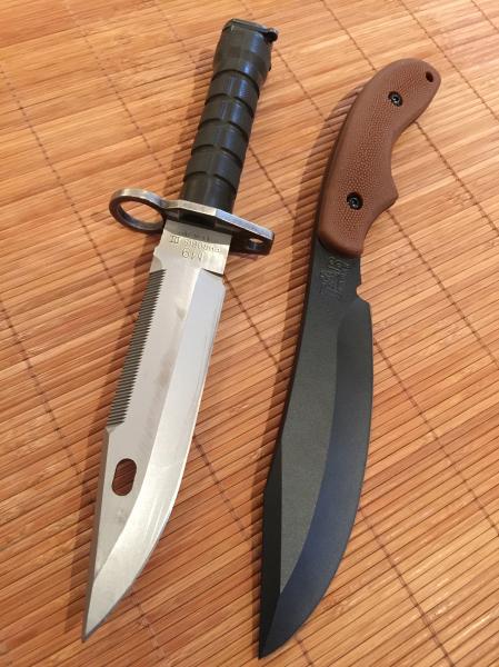 Incluyo dos fotos comparativas del tamaño del KA-BAR POTBELLY (respecto a una bayoneta BUCK M9 PHROBIS III), y algunas con el KA-BAR Monoblock que viene incluido.