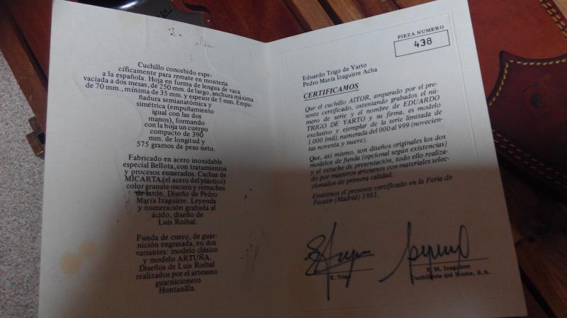 El numero de serie es el 438 y trae su certificado de autenticidad con una dedicatoria y firma del propio Trigo de Yarto. Me gustaria que la venta fuese en mano en Madrid, sobre todo porque ver el material en persona siempre es mejor para valorar, y sobre todo cuando hablamos de precios considerables como en este caso, pero se pueden mirar otras opciones.