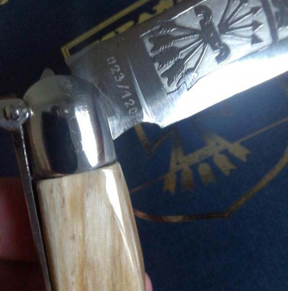 Bonita navaja, fiel réplica que se realizó comparándola con una de las escasas originales que existen hoy en día, tengo la suerte de tener una como la del compañero y es una auténtica maravilla.
