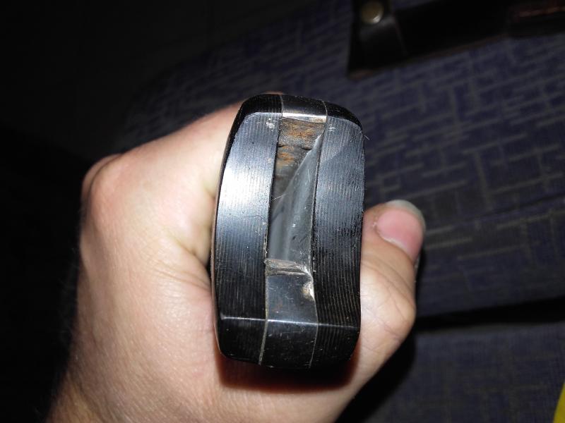 En la empuñadura tiene un hueco donde lleva un cuchillo pequeño que queda alejado perfectamente y queda sujeto mediante imanes creo no lo tengo a mano lo tengo junto al torno