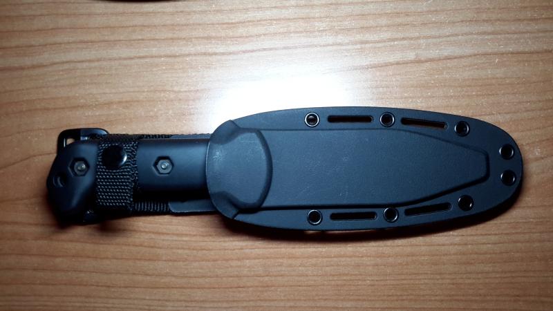 Cuchillo muy robusto en acero al carbono pensado como cuchillo de supervivencia.La funda es de kydex,muy bien construida.Nunca ha sido usado ni afilado.