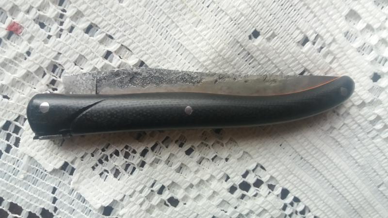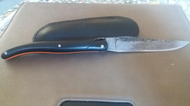 Comprada en la ciudad de Laguiole. La hoja es de acero al carbono XC75 y del tipo "brut de forge" es decir tal y como sale de La forja, y únicamente pulida en la parte correspondiente al filo.