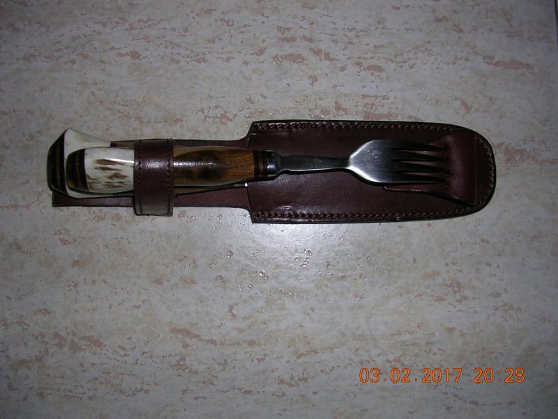 Vendo Cuchillo y Tenedor Argentinos marca Libertad, sin estrenar, encabados en madera y ciervo, funda de cuero.