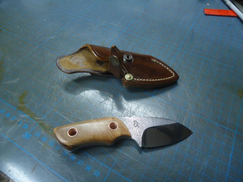Un buen amigo mío hace unos cuchillos de lujo, el plazo de entrega de diez a doce días, el acero es D2, los encabados en asta 100 euros y en madera 85, ambos más envío, son artesanos 100% tanto el cuchillo como la funda.