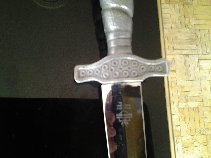 Vendo daga de Solingen con marcaje Rehwappen. La hoja mide 15 cm con un increíble grosor de 7 mm, a 4 mesas. Lleva vaina de cuero original con refuerzos. El pomo es un cráneo con tibias cruzadas, al dorso hojas de roble y unas guardas que evocan el martillo de Thor. Su anterior propietario me contó que un club de juventudes nacionalsocialistas lo encargo como edición limitada tras la 2gm y por tanto tuvo que cambiar los símbolos habituales anteriores y poner otros que evocaran el pasado sin levantar ampollas en el nuevo ambiente post bélico. La daga tiene una calidad excepcional y su estado es magnifico. El precio incluye el envio por ASMGO, también se puede entregar en mano en Madrid. Gracias por vuestro interes...