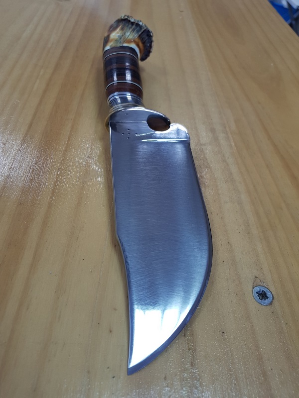 acero 9260 templado a 58-59 HRC ojo, es acero carbono...no es inoxidable, va cogiendo pátina con el uso