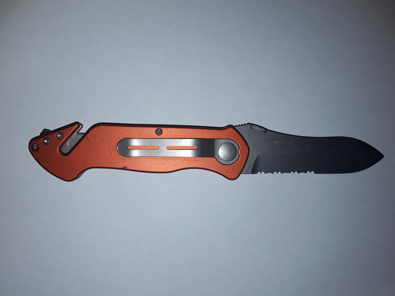 Para los que no las conocen lleva rompe vidrios, para cortar cinturones, hoja parcialmente aserrada y boton de bloqueo para la hoja.