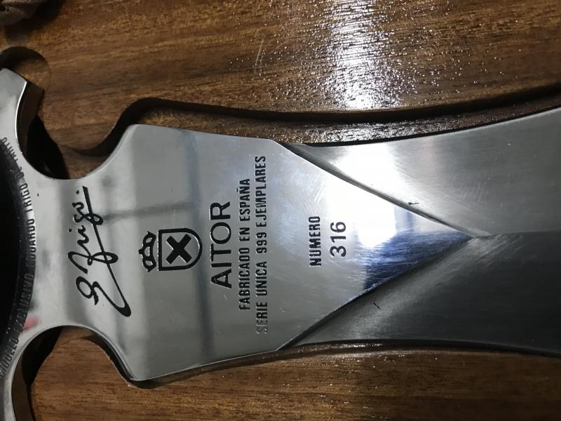 Si lo sabía, muchas gracias, lo lei en éste foro, lo que pasa es que ese es el precio que quiso pagar "una persona" no el precio real del cuchillo.Según una página de tasaciones especializada, ese cuchillo por la exclusividad del producto, (solo mil piezas y una pertenece a la Casa Real) el material del cuchillo y su calidad, el diseño, etc... está tasado en un precio real de 1690 € y como yo nunca he sido avaricioso pues le he puesto ese precio....jajaja.