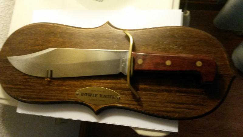 vendo cuchillo de coleccion tipo Bowie, con funda y panoplia. Reproduccion del original de Bowi, año 1840.