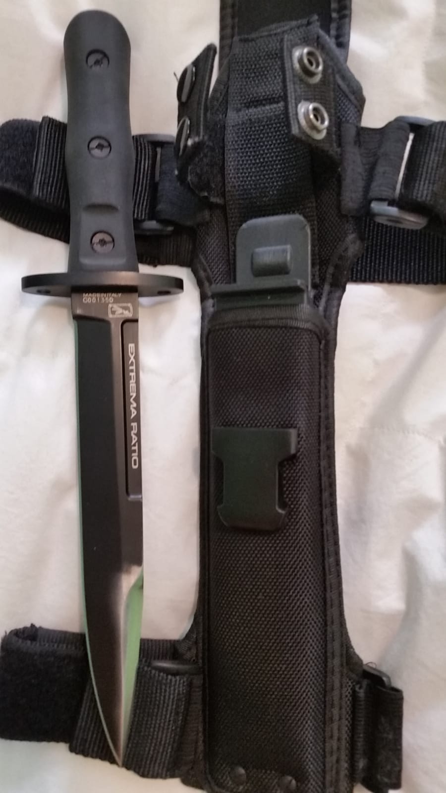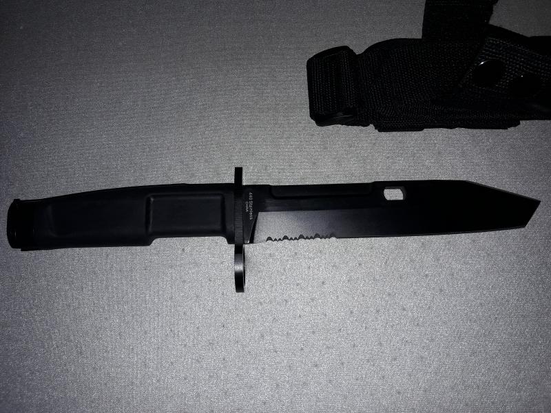 Vendo estos tres cuchillos extrema ratio chinolis.una bayoneta tipo tanto con funda Pernera , 17cm de hoja y 13cm de empuñadura , otro tipo daga con la punta modificada , 19cm de hoja y 12cm de empuñadura. Y otro con 17cm de hoja y 13cm de empuñadura. Todos con funda Pernera.para ver están en Valencia. Pido 75€ por los 3 , también los vendo sueltos . Aceptaría cambio por otros cuchillos o navajas.