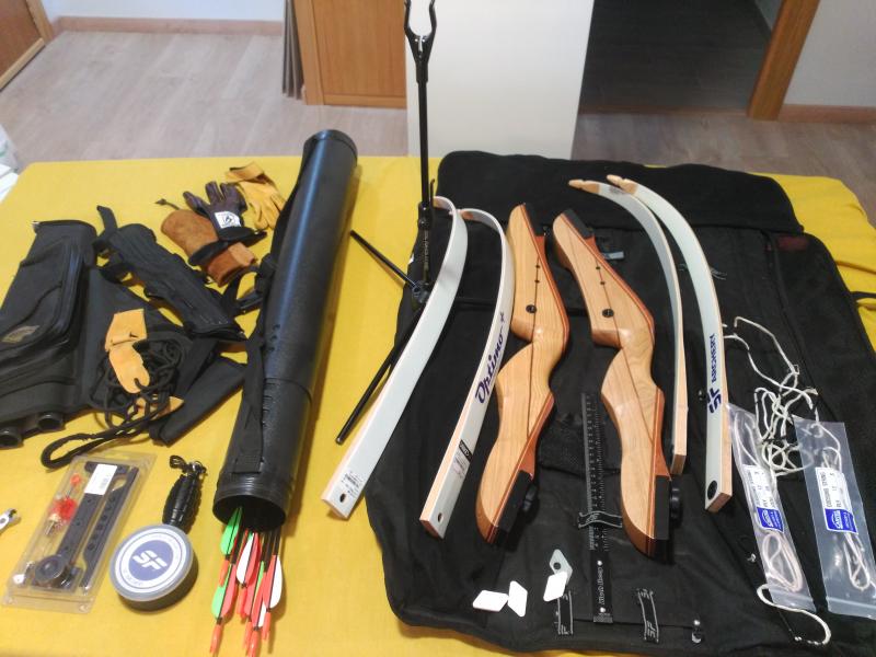 Todo o que se ve en la.fotos.....aunque las flechas son para la medida de mi hijo y la mía, como sabes cada tirador tiene su longitud de flecha