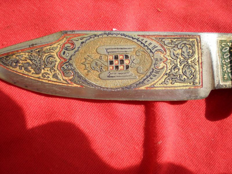 Pues eso vendo un cuchillo damasquinado, que ya lo puse en armas blancas, y salio que era de las juventudes universitarias, o de falange u otro grupo