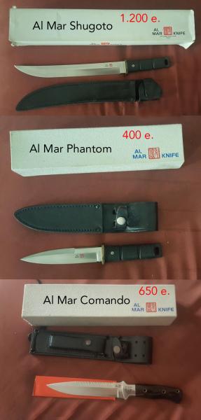 Vendo tres cuchillos AL MAR en Madrid sin usar. Están marcados como fabricación japonesa. Los precios en la imagen. El precio del Shugoto es discutible, los otros dos no. No hago cambios: