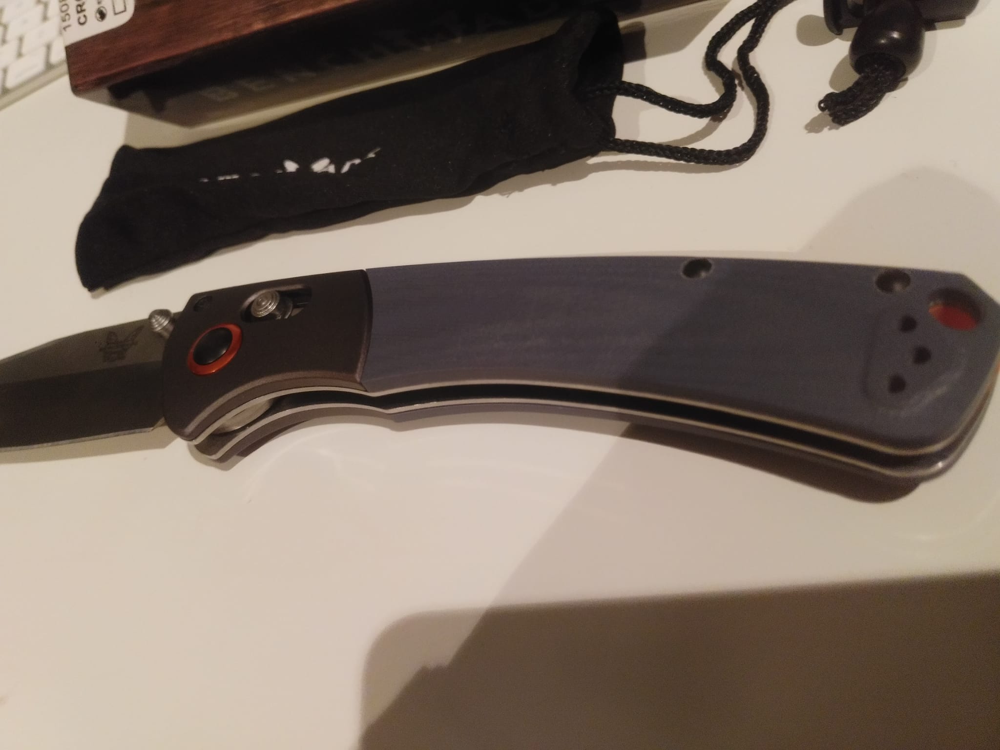 Vendo una replica de la navaja BENCHMADE CROOKED RIVER,es una replica de buena calidad,es nueva,no se ha usado aun,tiene caja y funda.