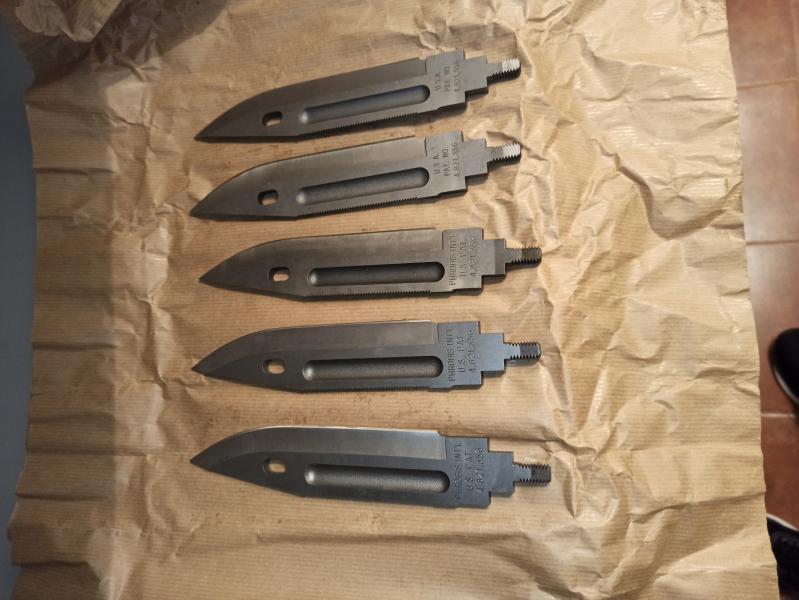 Buenos días, tengo 5 hojas sin estrenar de bayoneta M9 Marto. 3 son M9 que son las del Ejército y 2 son M9A1 que son para el mercado civil. Se pueden vender sueltas a 40euros cada una más los gastos de envío o las 5 juntas por 180 y los portes pagados.