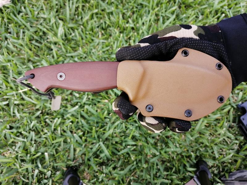 Cachas de Celisol, acero Ac55si7 con temple progresivo, 6mm de grosor, funda de kydex hecha por Fundas RK, cordón fiador con chapita de latón única con su logo, hecha por Angel Corts para conmemorar su diseño mas antiguo.