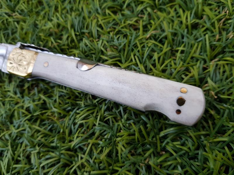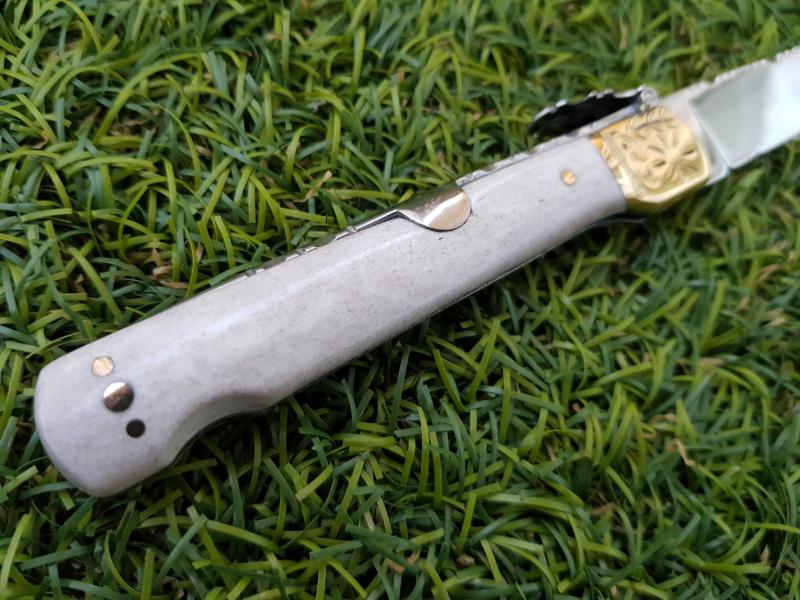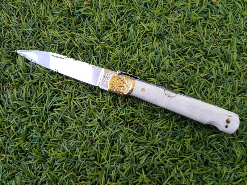 Navaja Vendetta Corsa Ciervo Milano del artesano Jose Herreros, pieza única hecha por encargo. Realizada con un mango de asta de ciervo totalmente natural pulido y con una bonita virola de estilo italiano. Totalmente nueva.