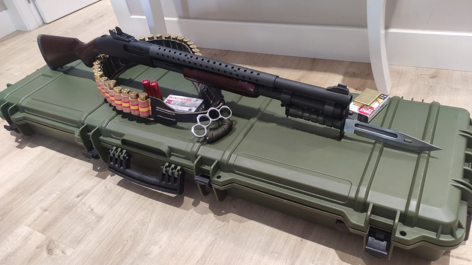 Compré dos bayonetas para una 590a1, un dato a tener en cuenta esque los retenes del mango que encastran en el soporte de bayoneta no están bien montados en las que se han vendido, yo tuve la suerte de que al comprar dos intercambié las piezas y se me han quedado como debe ser porque si no no entran en el arma. Precio 190€. Está nueva a estrenar.