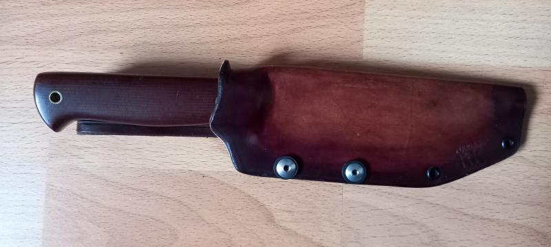 Cuchillo polaco de la marca Varms. Usado pero en perfecto estado. Funda a medida de kydex forrado en cuero y cachas en micarta.