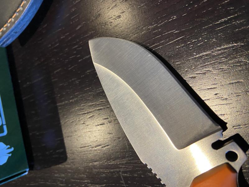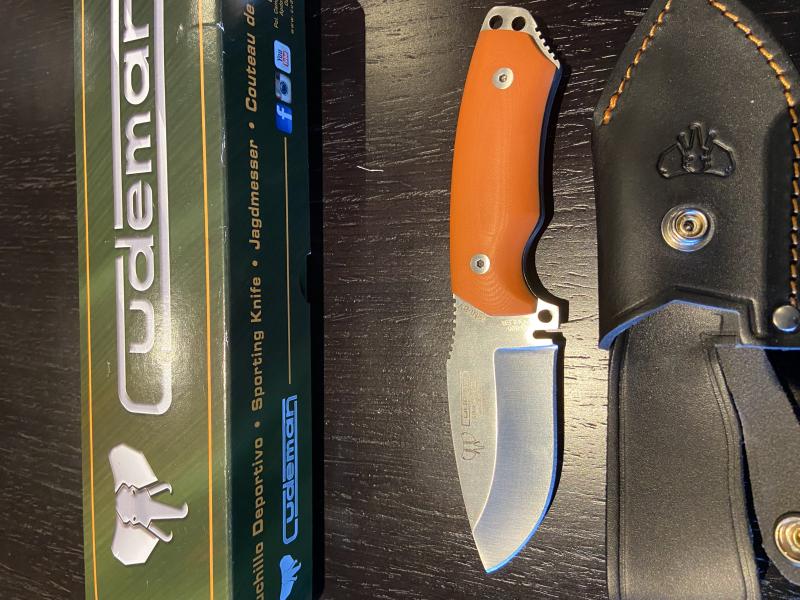 A la venta este mini boina verde en acero Böhler N-695 y cachas en G10 naranja con separadores negros. Funda de piel con cosido también en naranja. Totalmente nuevo, sin ningún uso. No ha cortada ni papel ni salido de la caja más que para las fotos.