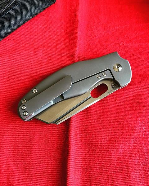 A la venta esta Kizer Sheepdog thumbhole en acero S35VN y cachas de titanio. Totalmente nueva, sin ningún uso, con funda, embalaje y tornillería de recambio tal y como viene de fábrica.