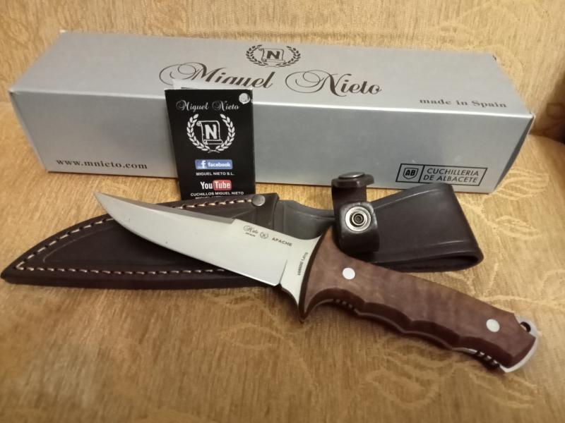 - Nieto apache,1040, de 12 cm, enterizo con cachas de olivo con nogalina , y al aceite de linaza.Nuevo en su caja