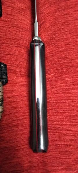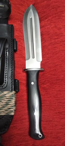 Cuchillo j&v Ezapac. No se a utilizado nunca. Cachas micarta negras pulidas con separadores rojos y lomo pulido a espejo. No tiene caja , se encuentra en Valencia. 80€ más envío.