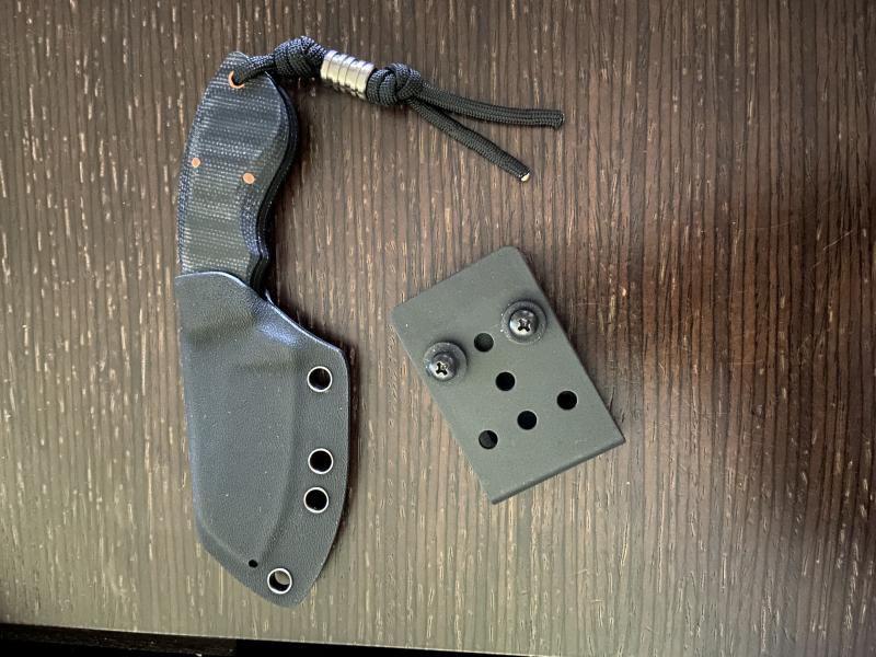 En venta este mini cuchillo de Boker en acero D2 con acabado en negro, cachas en micarta negra y cobre con clip de cinturón. Con su embalaje original.