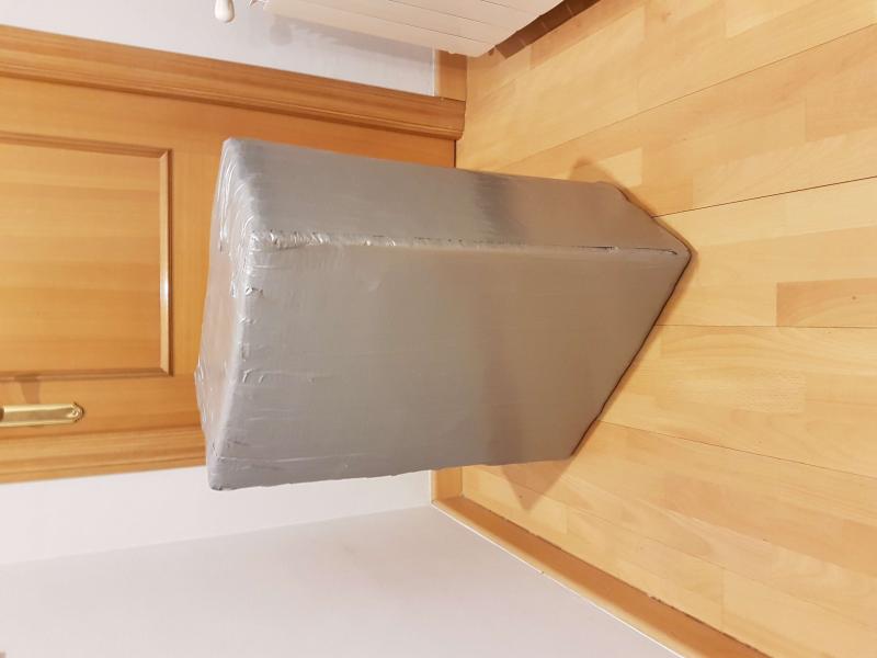 Vendo parapeto para arquería hecho por mi como medida de seguridad para tensar el arco en casa, sin usar, no tiene ningún agujero. Está hecho con 7 planchas de aglomerado de poliuretano (aislante acústico) recubierto de cinta americana. Medidas 70 x 50 x 28 cm. El valor de los materiales supera los 40 euros.