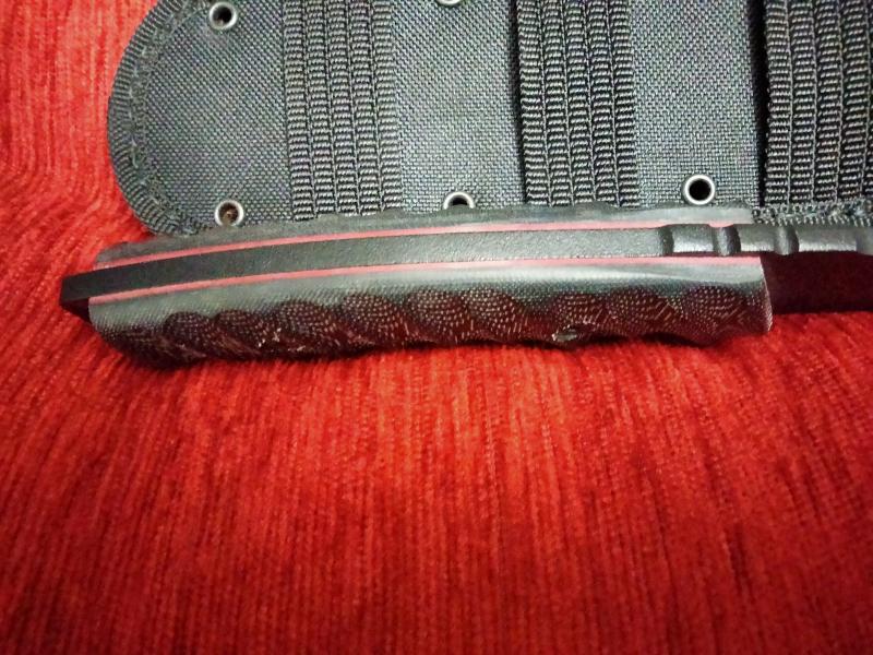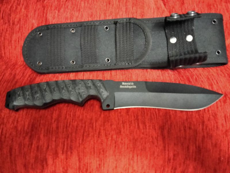 Cuchillo tactico con hoja pavonada totalmente nuevo. Tiene cachas micarta negras con separadores rojos. Más info por privado. Se encuentra en Valencia y el precio es de 80€.