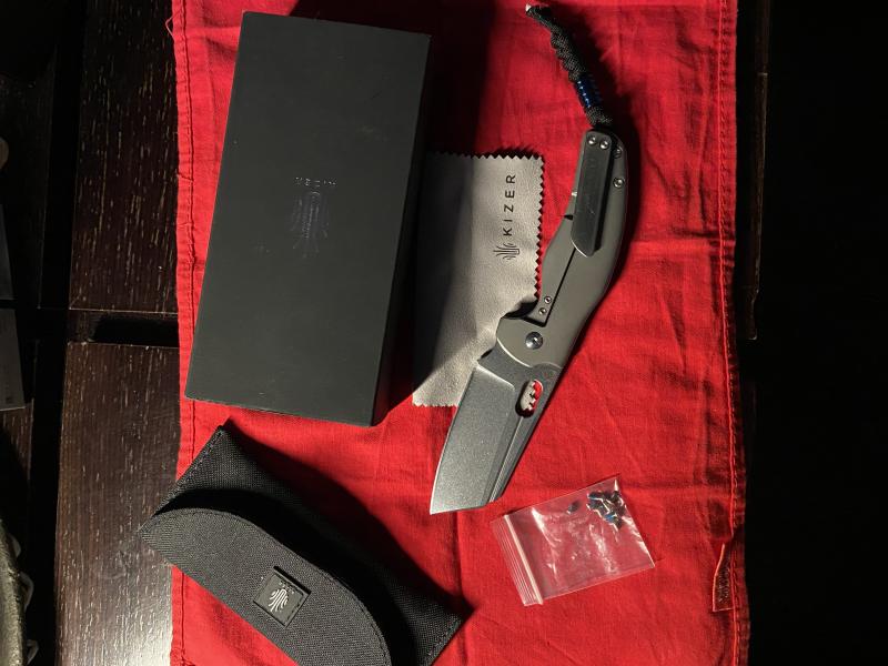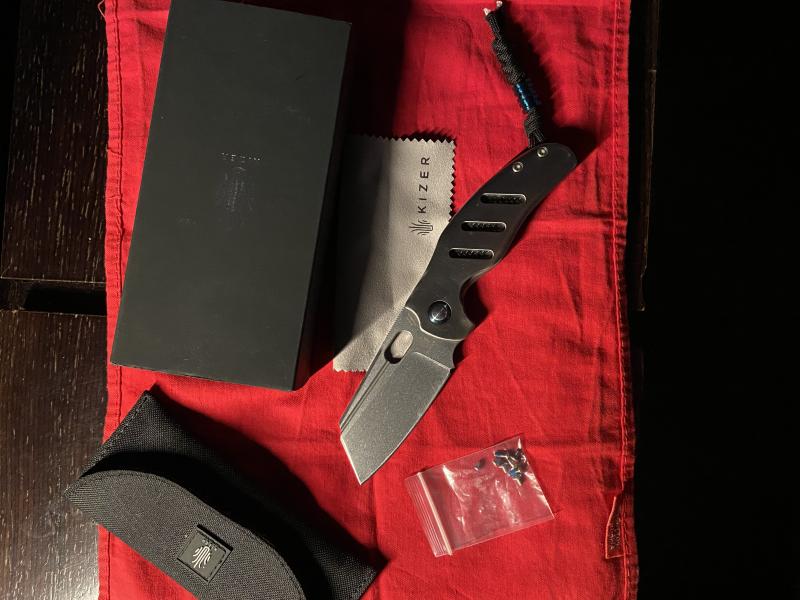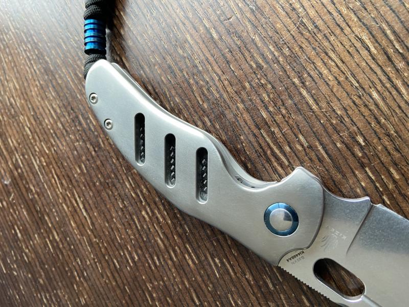 Caja, funda y tornillería de recambio de origen. Rabiza en paracord y beat de titanio azul.