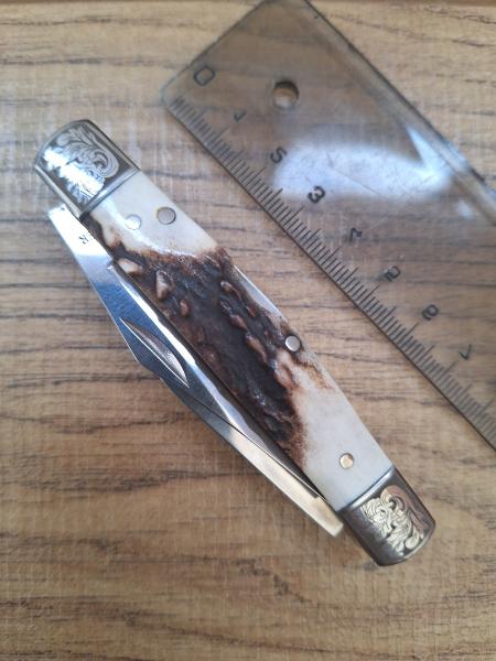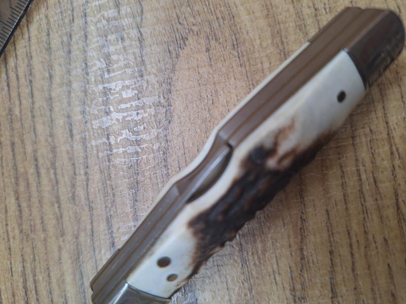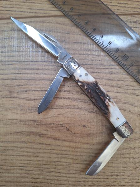 Navaja GERBER con tres hojas y cachas de asta de ciervo.