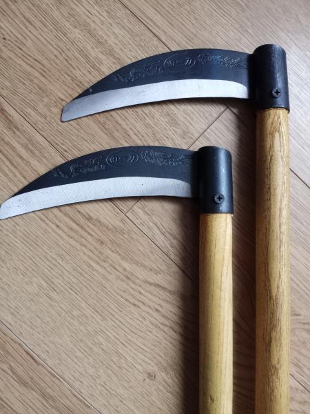 Vendo pareja de Kama (hoz) Kobudo, funcionales hoja afilada de acero al carbono de 17 cm , mango de 53 cm de longitud