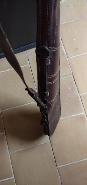 - Maletín en cuero para escopeta con dos juegos de cañones. Tiene el asa reparada. 90€