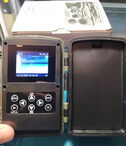 cámara de fototrampeo trap trailcam. usada una noche, estado impecable y funcionando perfectamente. Graba en micro SD (no incluída) con sensores perimetrales hace fotos y vídeos de día y de noche con su iluminación IR. Alimentación a 8 pilas AA o batería externa por su conector. Resolución máxima full HD 1920x1080p en vídeo y 16Mp en fotos.