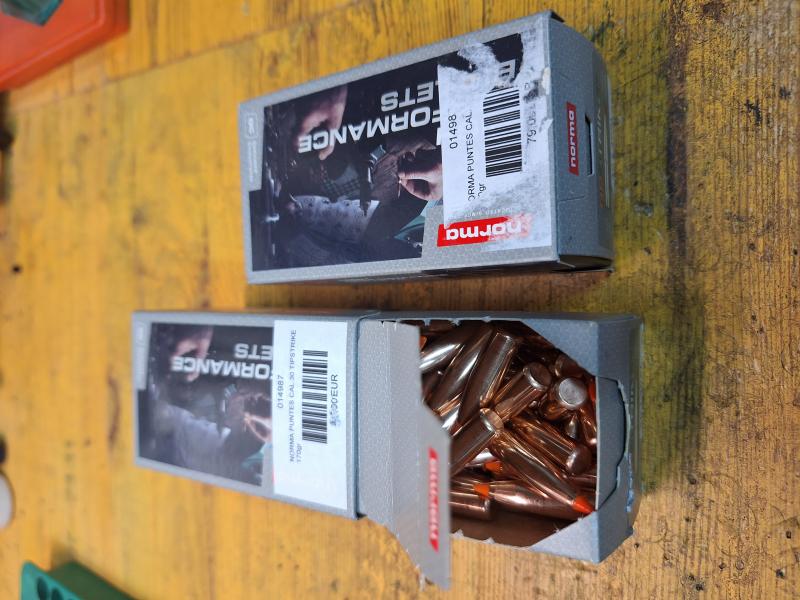 Vendo dos cajas de puntas, norma tipstrike del 308, 170 gr, una sin estrenar y la otra con 75 unidades, total 175 puntas