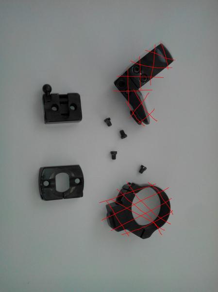 Vendo bases apel (appel, apell) originales, estaban colocadas en un rifle Voere 2165; también valen para Santa Barbará, Brno, Máuser 98 o similares, en perfecto estado, la base delantera tiene una distancia entre taladros de 22m/m. y la trasera de 13m/m.
