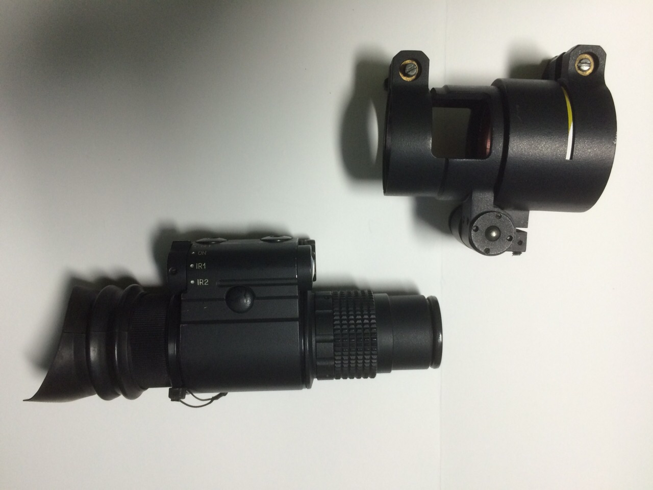 Tiene pocas horas de uso y se encuentra en buen estado.Es un monocular multipropósito puede ser montado con arnes de cabeza o adaptado a un visor.Se vende con adaptador de campana.
