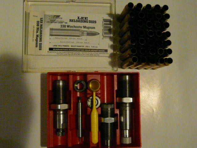 Por venta del rifle, vendo lote de juego matrices Lee para el 338 WM, compuesto por tres dies, incluyendo el de crimpar. Prácticamente nuevo, no habrá llegado a 50 cartuchos. Incluye la galga Lee y 37 vainas. No se vende por separado. Precio 55 € incluyendo el envío.