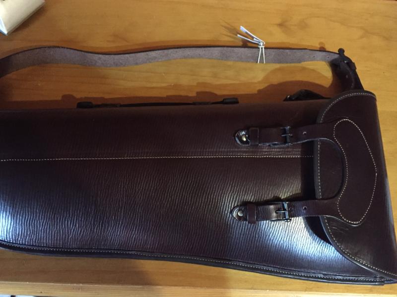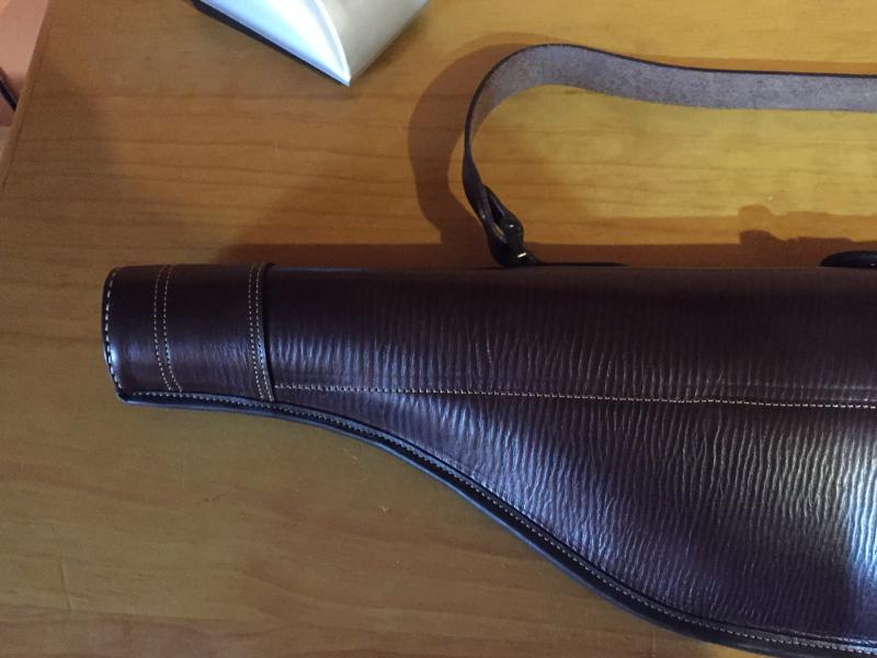 Vendo funda para escopeta o express de cuero rigido, broches de hierro y forro interior de borrego. Nueva 01