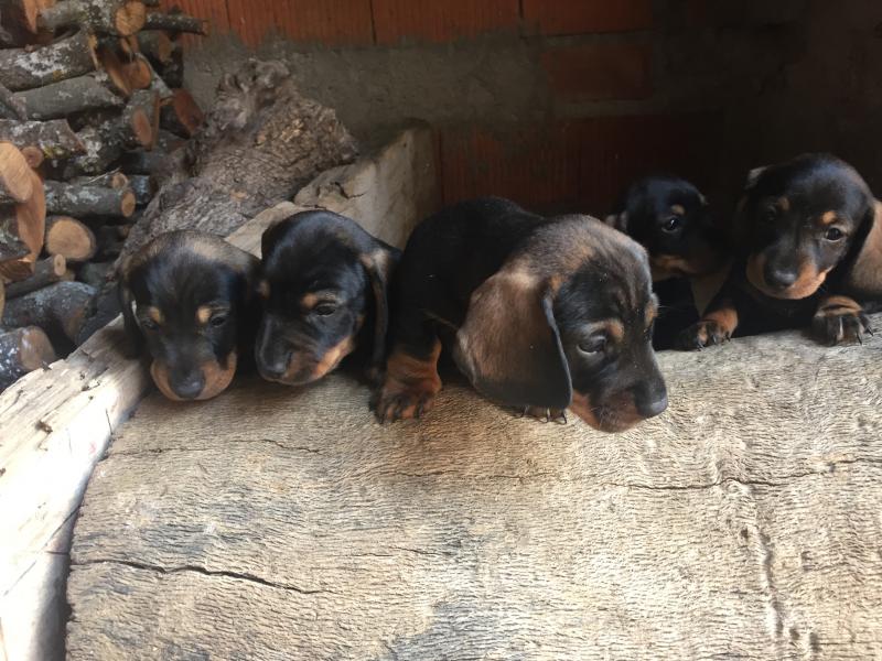 Teckels pelo fino, cachorros con menos de dos meseses , solo machos, hembras vendidas. Padre con pedigree y madre pendiente de reconocimiento de raza. Padres excelentes en caza jabalí, ciervo, zorro,...Se aceptan cambios por armas. Precio en el Foro 180€.