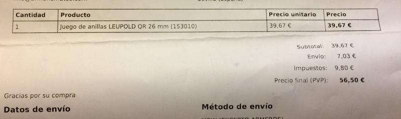 Tan solo las anillas (sistema de quitar y poner y seguir perfectamente a tiro) ya cuestan unos 50 euros, sin incluir gastos de envío.