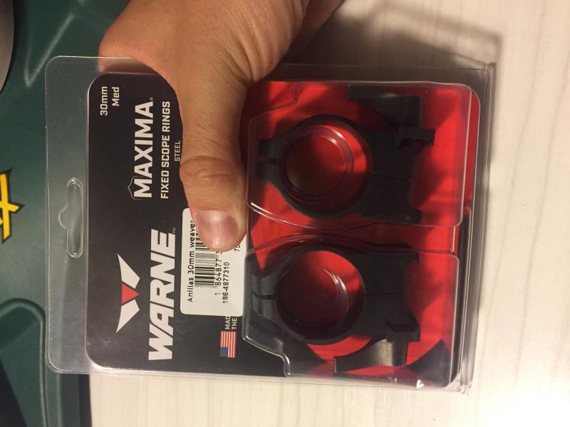 Se venden anillas Warne maxima desmontables, son las altas para visores hasta 56mm de campana y 30mm de tubo, están prácticamente nuevas, se montaron y cambiaron por otras más bajas para un visor de menor campana, su precio 80€ porque están impolutas como comprarlas en tienda, con su embalaje y todo, se encuentran en Madrid pero se pueden enviar.