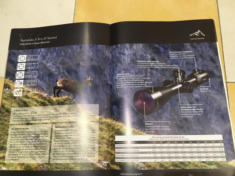 Vendo visor DDoptics 5-30X50 III generación, retícula mil-dot iluminada (se ilumina solo el dot central regulable en intensidad). Magnífica nitidez y claridad (a 400m se ven los agujeros .30). Excelente para tiro y recechos a larga distancia. Lentes HD sin aberraciones ni a máximos aumentos. Torretas tácticas reseteables. Perfectos ajustes y clics, sistema zerostop torretas. Corrector paralaje. Tubo de 30 mm. En perfecto estado, con embalaje y documentación originales, no tiene ni un arañazo. Vendo porque se lo compré para mi hijo y no se adapta a tirar con tantos aumentos. Se puede enseñar y entregar en mano para que se vea que está nuevo. Precio 830€ envío incluido (precio sin anillas, si se quieren las anillas leupold QRW 80€ más). Precio algo negociable.No cambios. Puedes ver características en: https://es.spam.com/visor-ddop ... 30x50.html