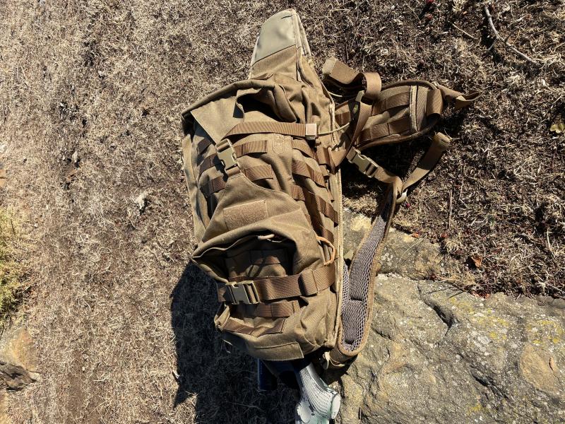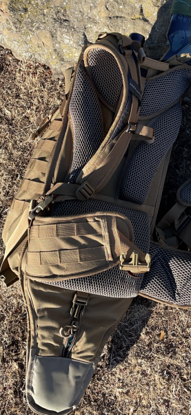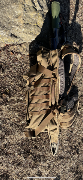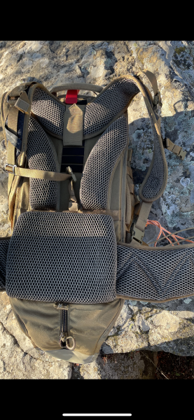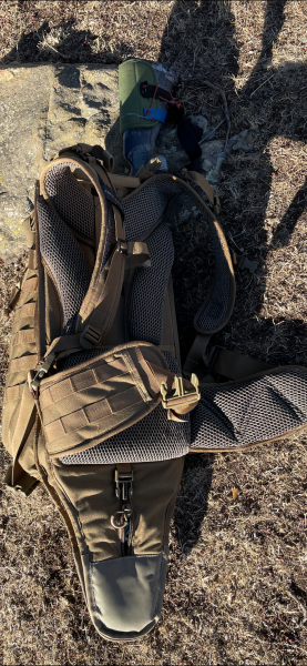 El rifle o escopeta entra a la perfección y es súper cómoda. También es autorregulable en altura de hombros. Total, una mochila top. Varios bolsillos y muy fácil de manejar.