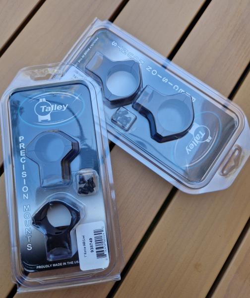 Dos juegos de monturas marca Talley para rifle Kimber de acción corta 84M. Son las bajas y hay un juego de 30 mm y otro de pulgada. Completas con sus tornillos y llave. Están en Madrid y son 40 euros cada juego o 70 si se compran los dos juntos.